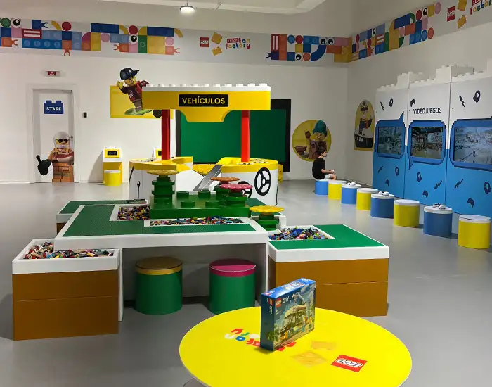 Este espacio de juegos de LEGO está supervisado por monitores especializados y cuenta con diferentes áreas tematizadas, donde descubrir las últimas novedades de productos LEGO®.