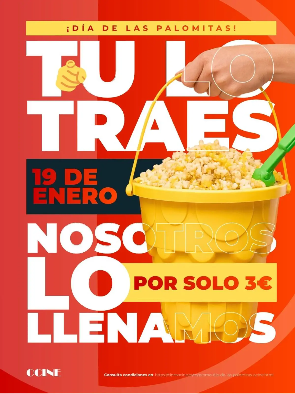 ¡El próximo lunes 19 de enero, trae tu propio cubo y te lo llenamos de palomitas por sólo 3€!