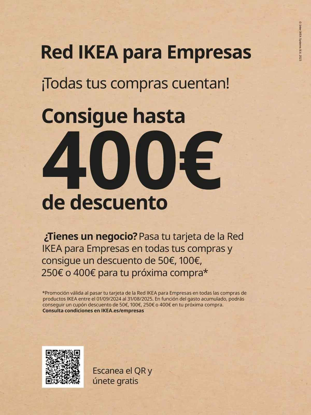 🔹 Pasa tu tarjeta de la Red IKEA para Empresas en todas tus compras y consigue un descuento de 50€, 100€, 250€ o 400€ para tu próxima compra*