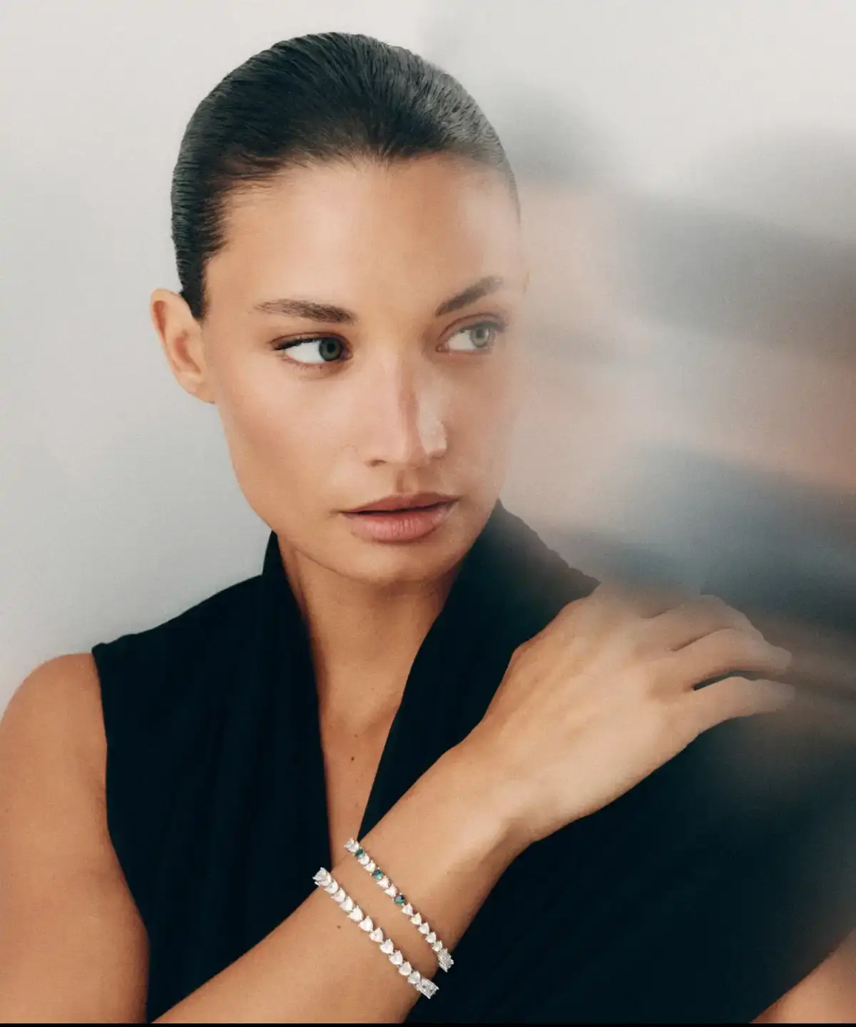 La colección se compone de piezas en plata de primera ley realzadas por gemas verdes y blancas en talla corazón y lágrima, dos formas universales que dialogan entre herencia y modernidad. Siluetas inspiradas en la joyería vintage, con énfasis en piezas tipo statement que se convierten en una auténtica declaración de estilo.